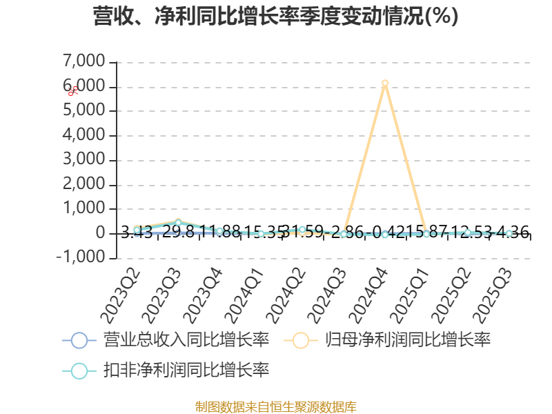 资产重大变化方面,截至2025年三季度末,公司长期股权投资占公司总资产的3.93%,上年末为0;货币资金较上年末减少17.06%,占公司总资产比重下降3.38个百分点;应收票据及应收账款较上年末减少5.79%,占公司总资产比重下降3.03个百分点;商誉较上年末增加56.53%,占公司总资产比重上升2.35个百分点。