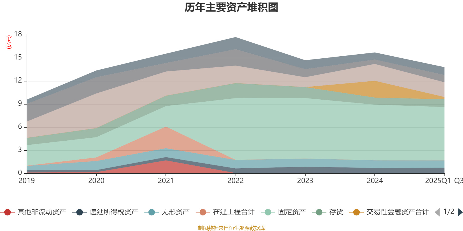 资产重大变化方面,截至2025年三季度末,公司交易性金融资产合计较上年末减少86.2%,占公司总资产比重下降11.69个百分点;固定资产较上年末减少4.1%,占公司总资产比重上升4.25个百分点;货币资金较上年末增加64.94%,占公司总资产比重上升3.21个百分点;存货较上年末增加8.77%,占公司总资产比重上升1.4个百分点。
