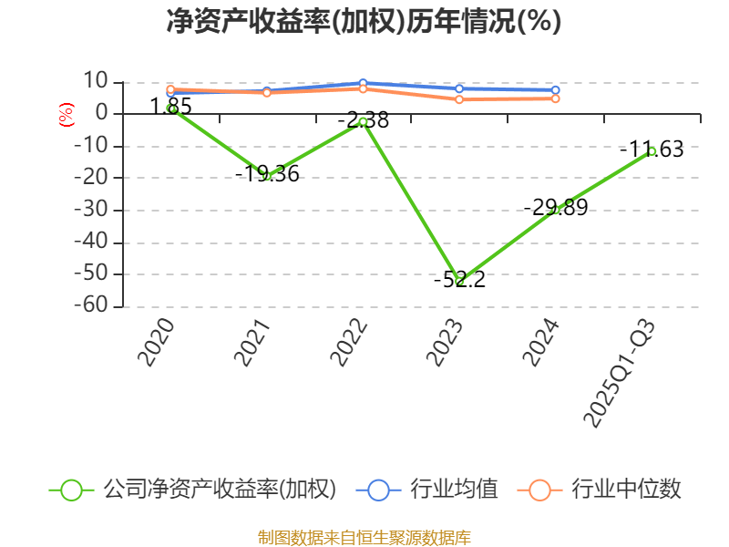 盈利能力方面, 2025年前三季度公司加权平均净资产收益率为-11.63%,同比上升13.77个百分点。公司2025年前三季度投入资本回报率为-4.52%,较上年同期上升5.89个百分点。