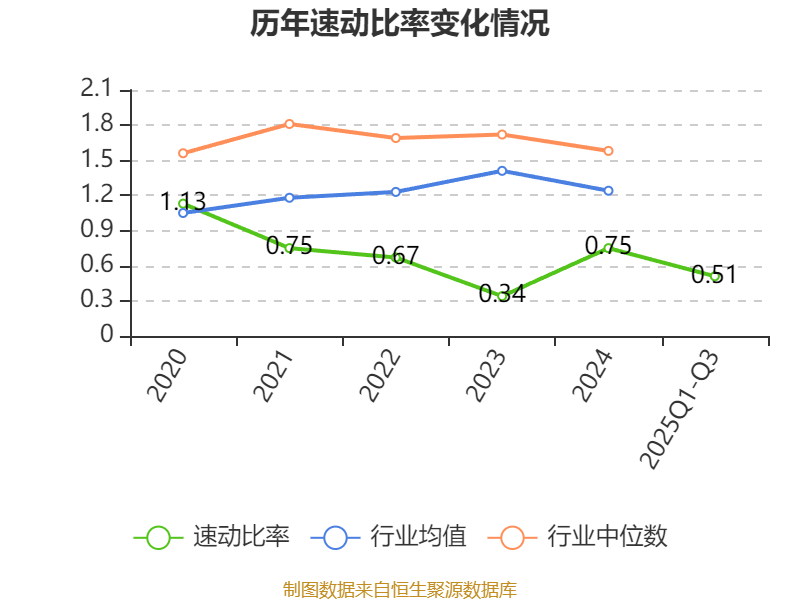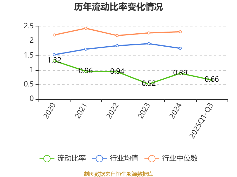 2025年前三季度,公司流动比率为0.66,速动比率为0.51。