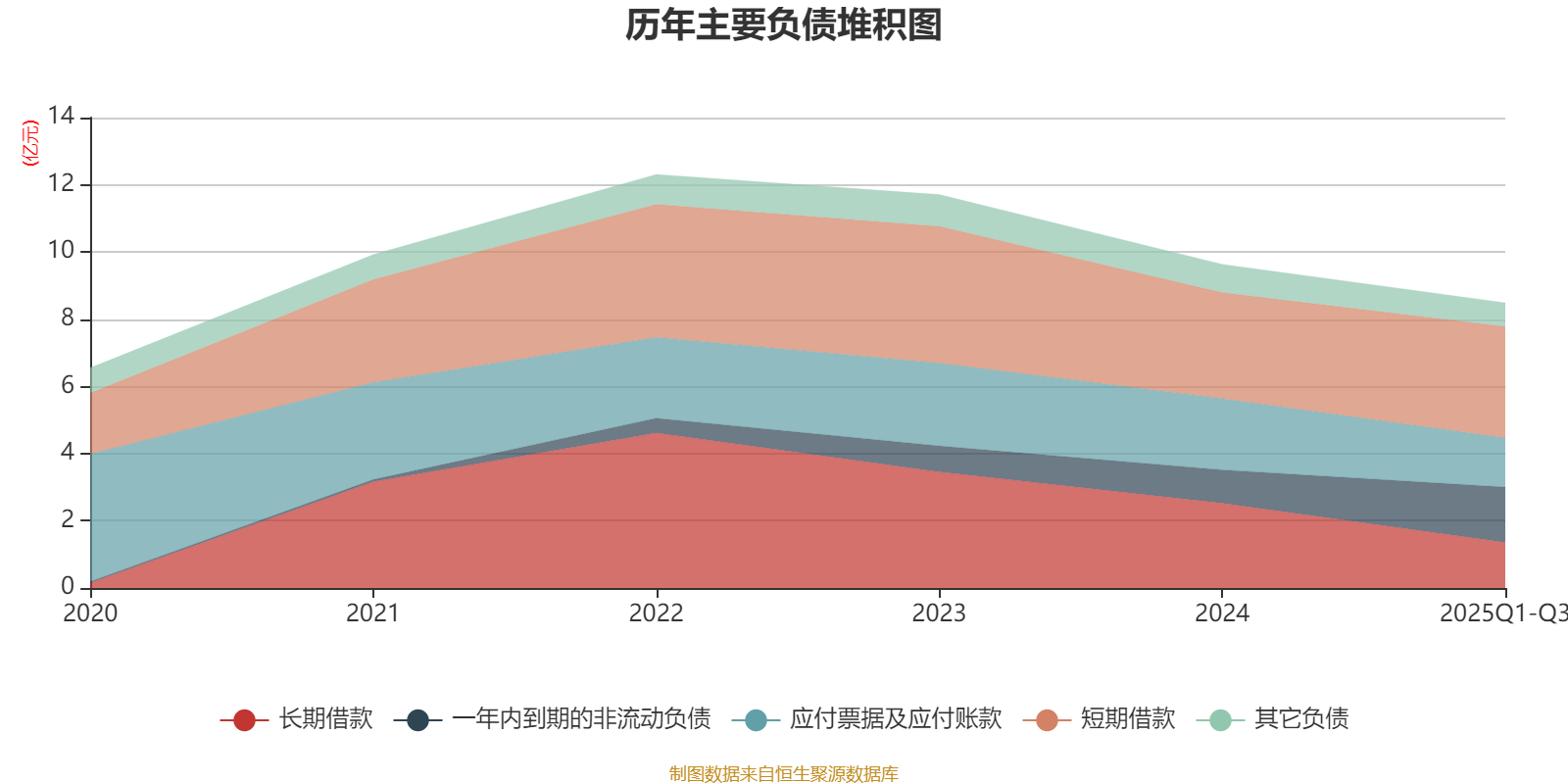 负债重大变化方面,截至2025年三季度末,公司长期借款较上年末减少46.46%,占公司总资产比重下降6.28个百分点;一年内到期的非流动负债较上年末增加66.55%,占公司总资产比重上升5.66个百分点;短期借款较上年末增加4.97%,占公司总资产比重上升3.94个百分点;应付票据及应付账款较上年末减少30.87%,占公司总资产比重下降2.87个百分点。