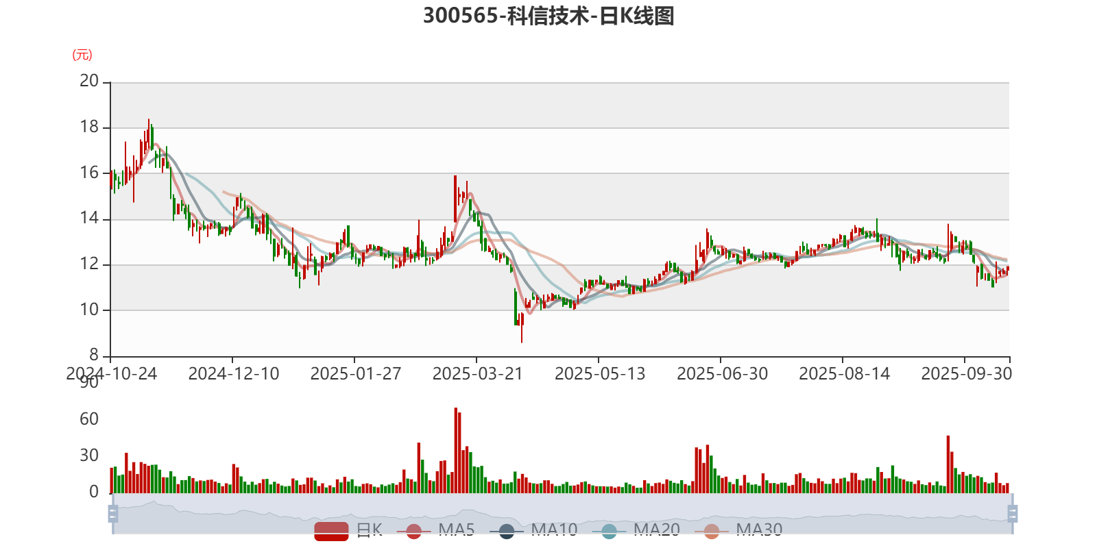 以10月23日收盘价计算,科信技术目前市盈率(TTM)约为-20.46倍,市净率(LF)约5.29倍,市销率(TTM)约4.65倍。