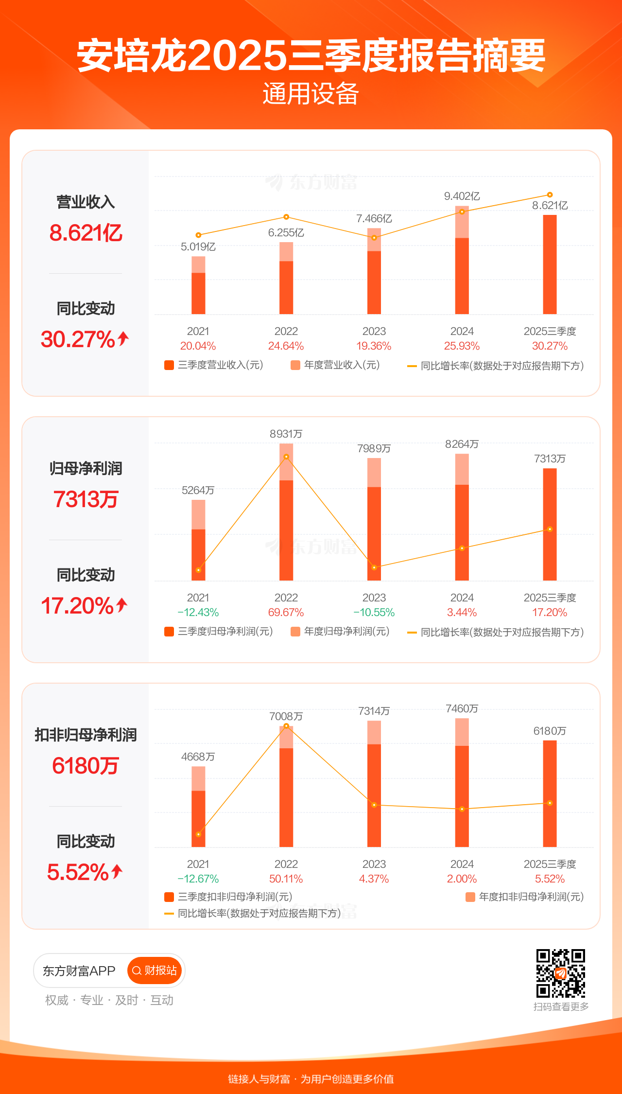 图解财报:安培龙前三季归母净利润7312.85万元,同比增长17.20%