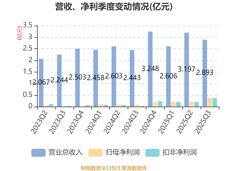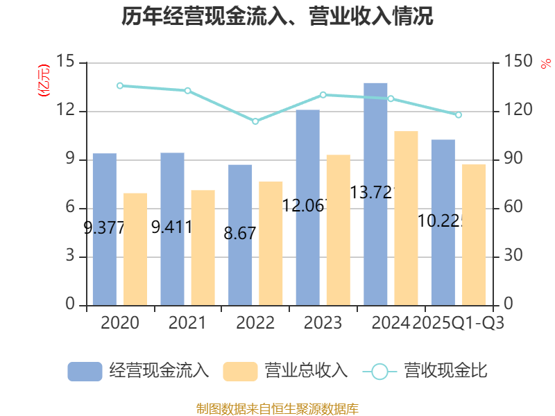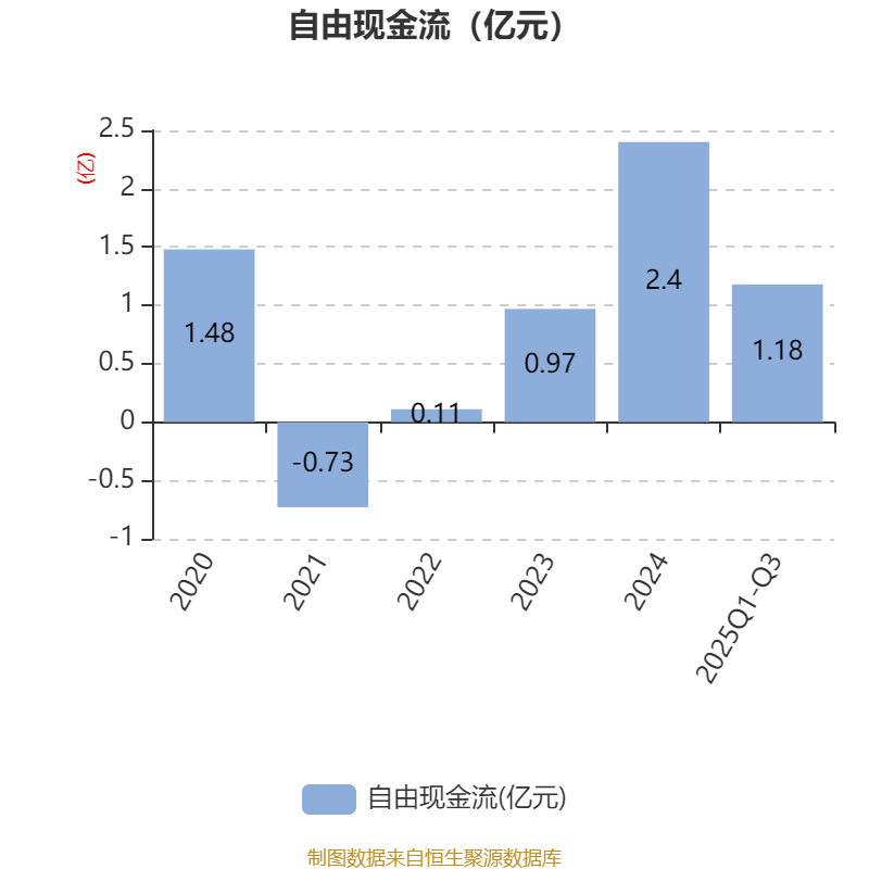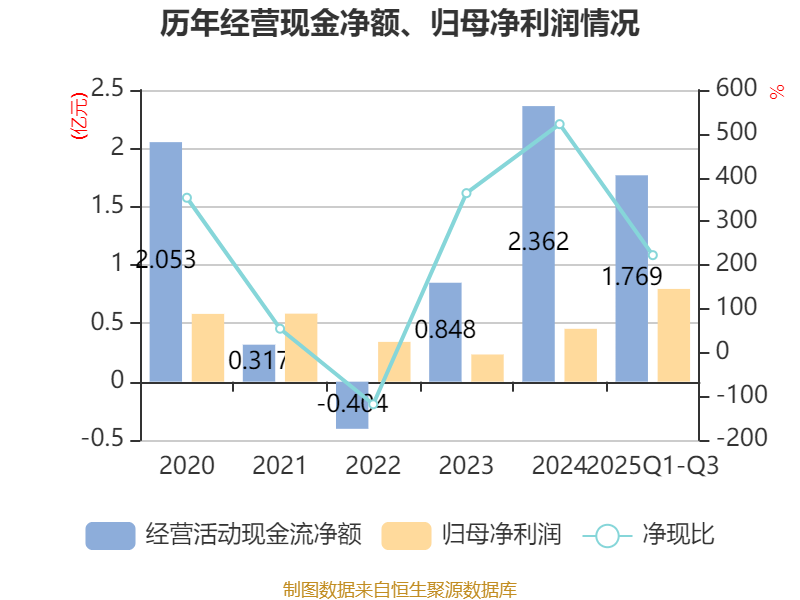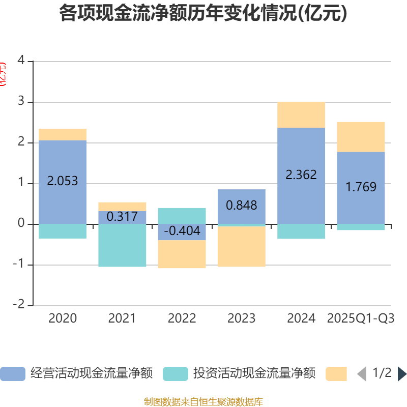 2025年前三季度,公司经营活动现金流净额为1.77亿元,同比增长51.38%;筹资活动现金流净额7327.79万元,同比增加245.32万元;投资活动现金流净额-1530.98万元,上年同期为-2905.09万元。