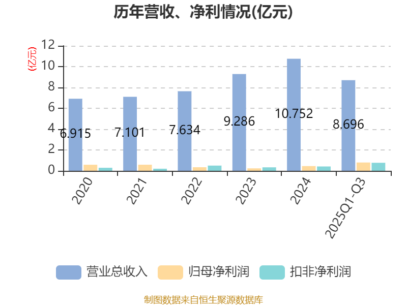 资产重大变化方面,截至2025年三季度末,公司货币资金较上年末增加34.87%,占公司总资产比重上升6.83个百分点;存货较上年末减少2.5%,占公司总资产比重下降4.83个百分点;固定资产较上年末减少10.99%,占公司总资产比重下降0.79个百分点;预付款项较上年末增加113.08%,占公司总资产比重上升0.69个百分点。