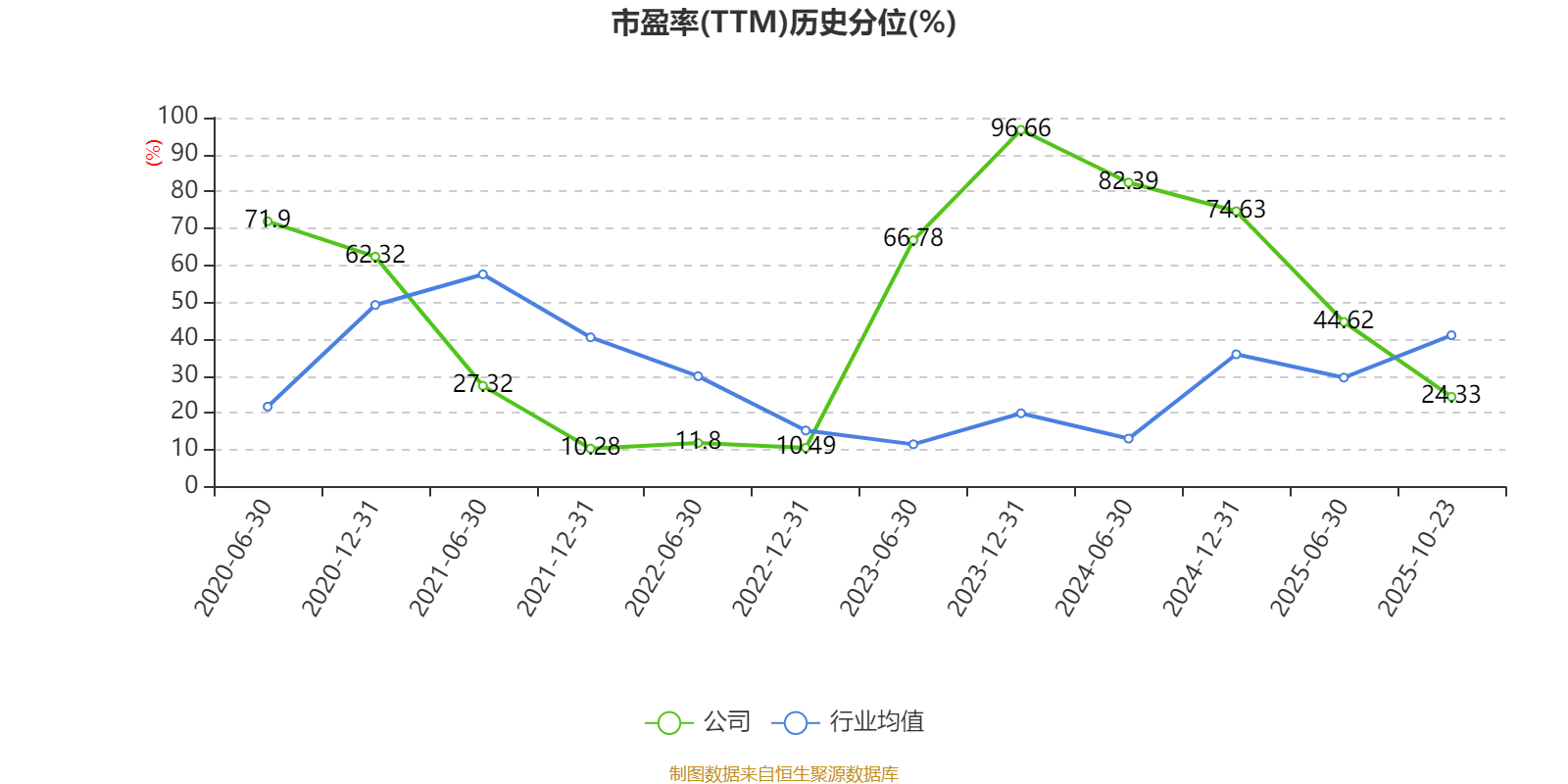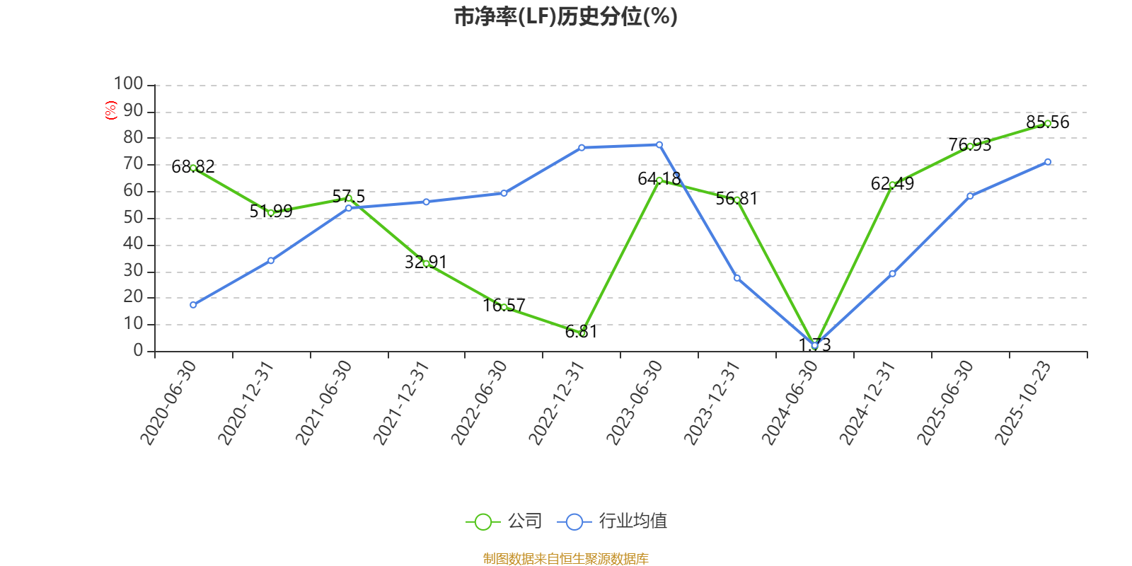 市盈率、市净率为负时,不显示当期分位数,会导致折线图中断。