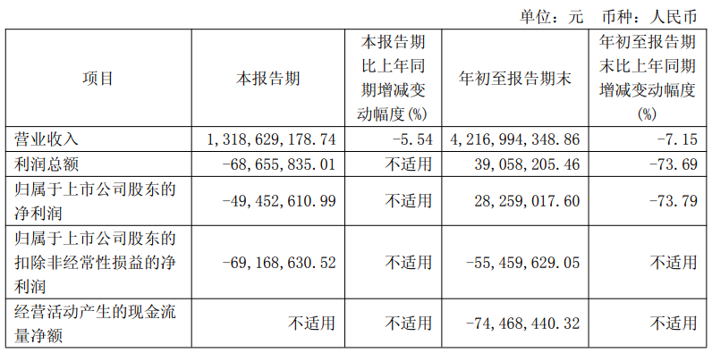 单季度来看,今年第三季度,太平鸟营业收入为13.2亿元,同比下降5.5%;归母净利润自去年同期亏损6338万元变为亏损4945万元,亏损额有所减少;扣非归母净利润自去年同期亏损7478万元变为亏损6917万元,亏损额有所减少。