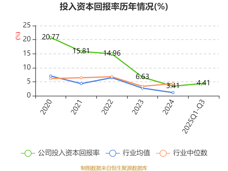 盈利能力方面, 2025年前三季度公司加权平均净资产收益率为5.49%,同比上升2.56个百分点。公司2025年前三季度投入资本回报率为4.41%,较上年同期上升2.46个百分点。