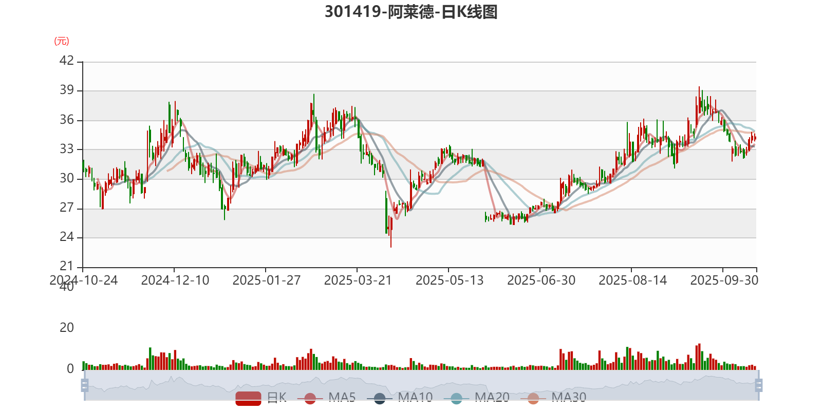 中证智能财讯阿莱德(301419)10月24日披露2025年第三季度报告。前三季度公司实现营业总收入3.16亿元,同比增长25.11%;归母净利润5224.06万元,同比增长89.00%;扣非净利润5197.53万元,同比增长92.20%;经营活动产生的现金流量净额为5637.5万元,同比增长16.48%;报告期内,阿莱德基本每股收益为0.4353元,加权平均净资产收益率为5.49%。