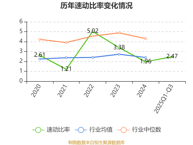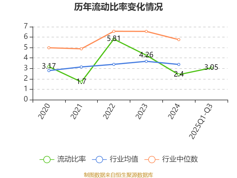2025年前三季度,公司流动比率为3.05,速动比率为2.47。