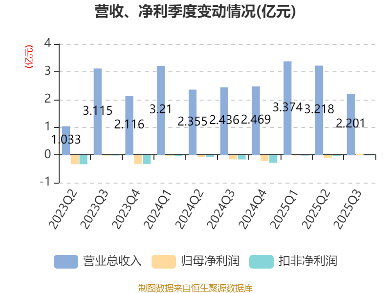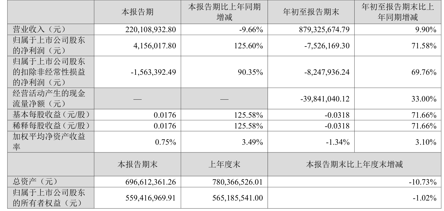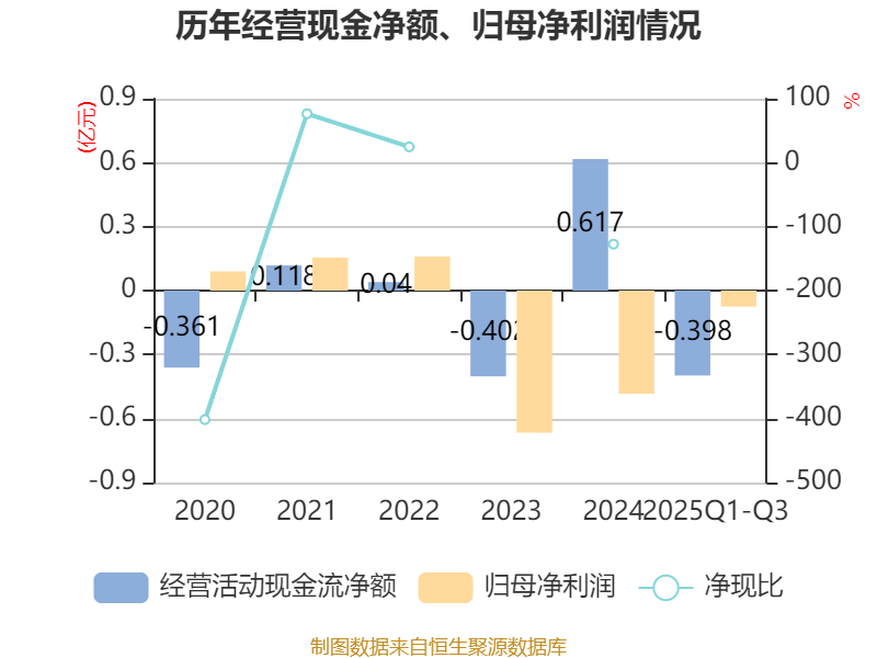 2025年前三季度,公司经营活动现金流净额为-3984.1万元,同比增加1962.15万元;筹资活动现金流净额-2442.25万元,同比减少2134.32万元;投资活动现金流净额-882.94万元,上年同期为-5411.23万元。