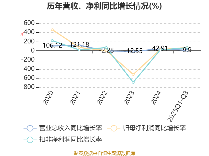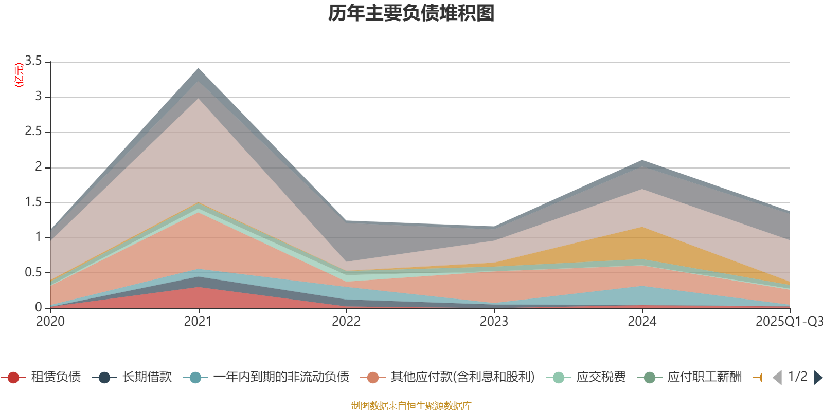 负债重大变化方面,截至2025年三季度末,公司合同负债较上年末减少90%,占公司总资产比重下降5.2个百分点;一年内到期的非流动负债较上年末减少91.01%,占公司总资产比重下降3.15个百分点;应付票据及应付账款较上年末增加9.61%,占公司总资产比重上升1.57个百分点;短期借款较上年末增加16.56%,占公司总资产比重上升1.25个百分点。