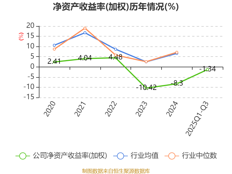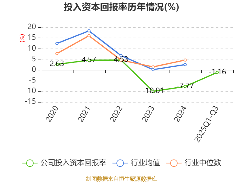 盈利能力方面, 2025年前三季度公司加权平均净资产收益率为-1.34%,同比上升3.1个百分点。公司2025年前三季度投入资本回报率为-1.16%,较上年同期上升3.22个百分点。