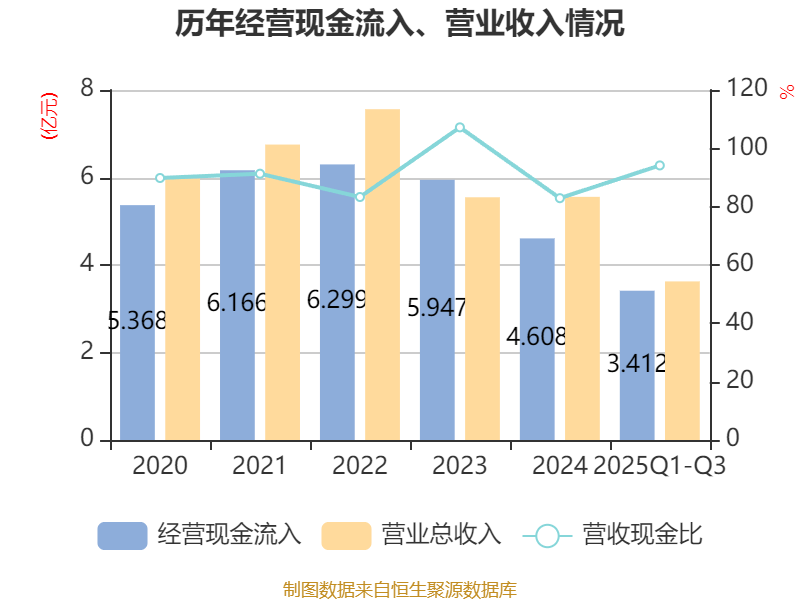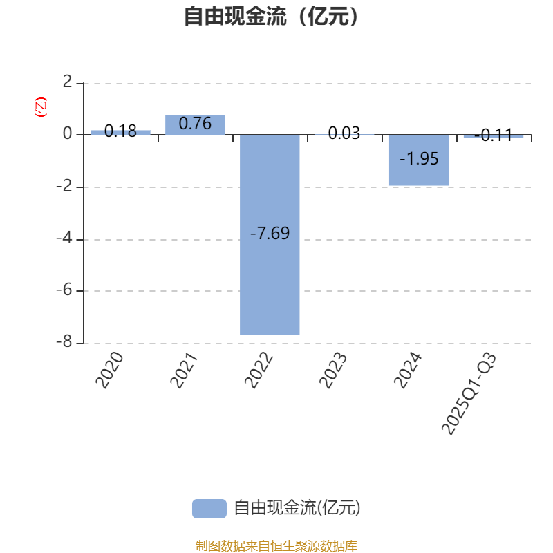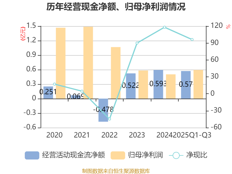 2025年前三季度,公司经营活动现金流净额为5700.63万元,同比增长442.14%;筹资活动现金流净额-6653.1万元,同比减少4766.65万元;投资活动现金流净额-4462.63万元,上年同期为2.34亿元。