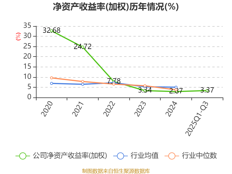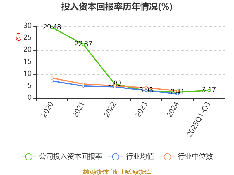 盈利能力方面, 2025年前三季度公司加权平均净资产收益率为3.37%,同比上升0.41个百分点。公司2025年前三季度投入资本回报率为3.17%,较上年同期上升0.51个百分点。