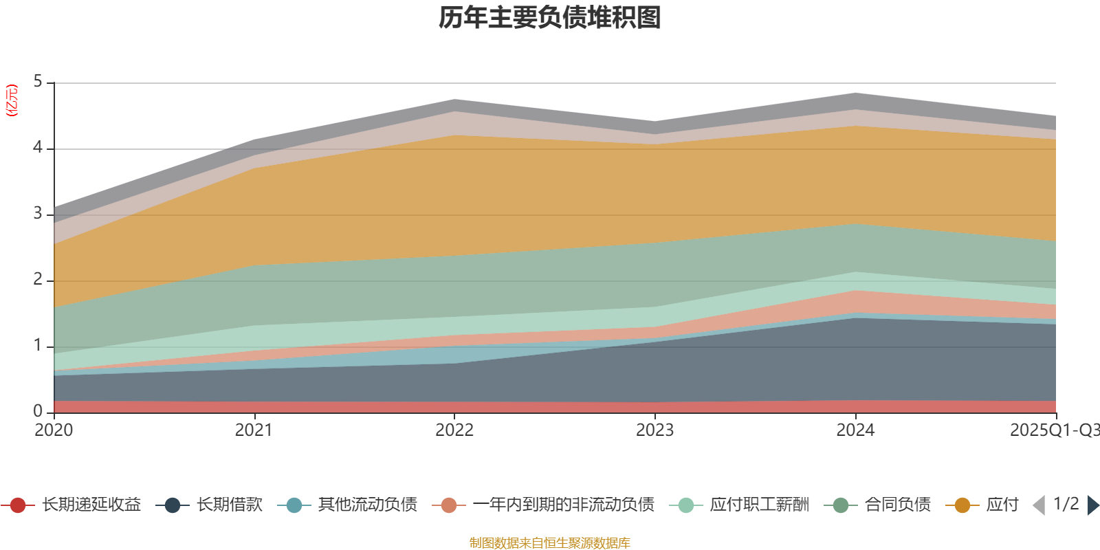 负债重大变化方面,截至2025年三季度末,公司一年内到期的非流动负债较上年末减少36.12%,占公司总资产比重下降0.54个百分点;短期借款较上年末减少42.7%,占公司总资产比重下降0.47个百分点;长期借款较上年末减少6.9%,占公司总资产比重下降0.36个百分点;应付票据及应付账款较上年末增加3.73%,占公司总资产比重上升0.28个百分点。