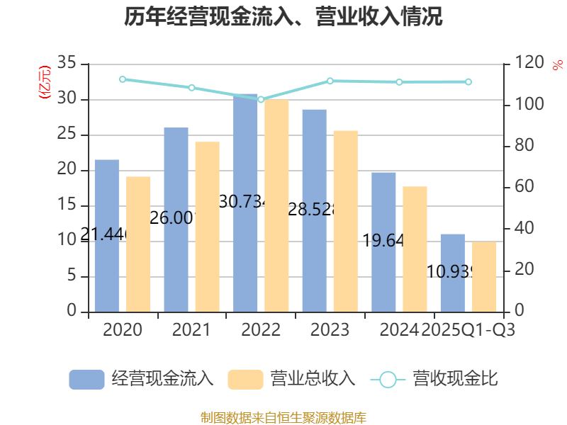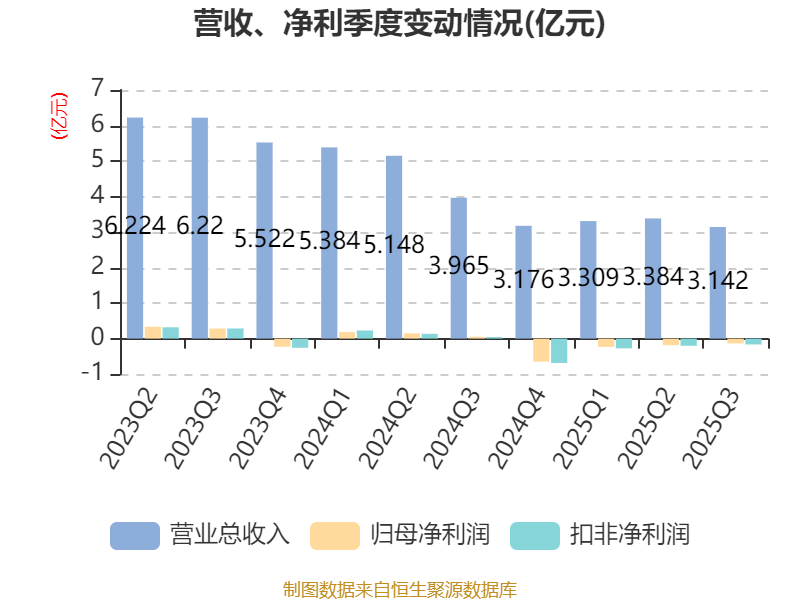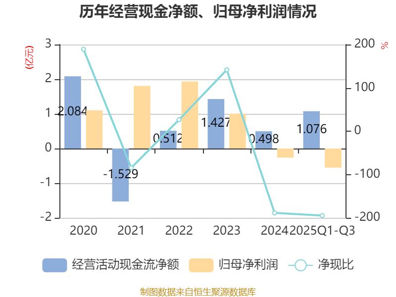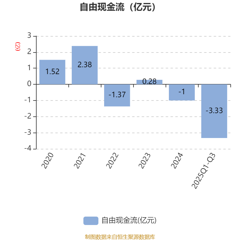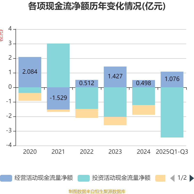 2025年前三季度,公司经营活动现金流净额为1.08亿元,同比增加1.63亿元;筹资活动现金流净额-118.48万元,同比增加6467.02万元;投资活动现金流净额-3.45亿元,上年同期为-8346.47万元。