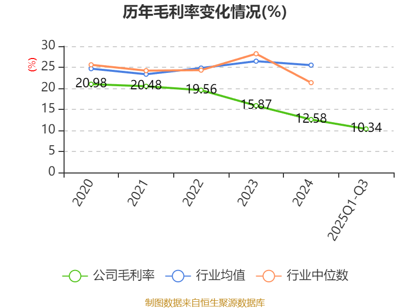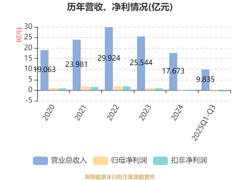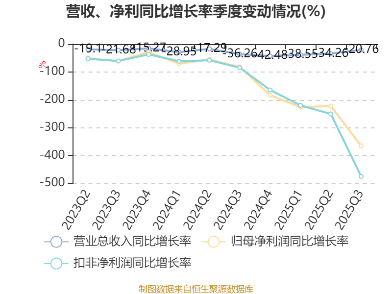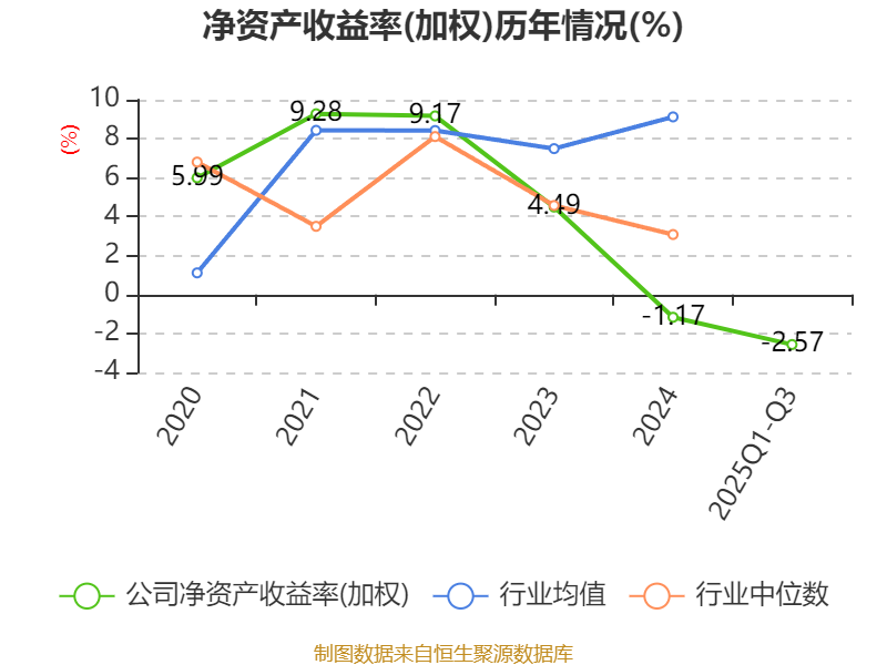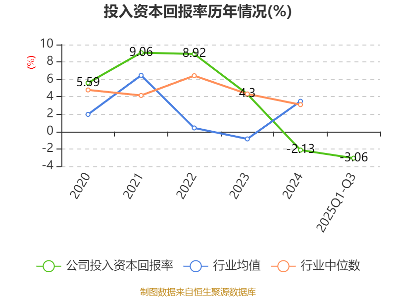盈利能力方面, 2025年前三季度公司加权平均净资产收益率为-2.57%,同比下降4.27个百分点。公司2025年前三季度投入资本回报率为-3.06%,较上年同期下降4.66个百分点。