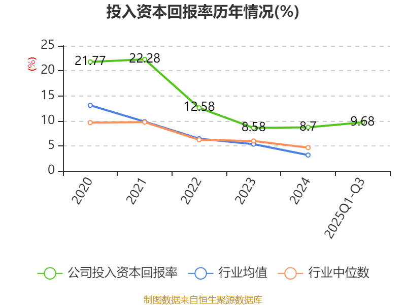 盈利能力方面, 2025年前三季度公司加权平均净资产收益率为10.75%,同比上升3.59个百分点。公司2025年前三季度投入资本回报率为9.68%,较上年同期上升2.87个百分点。