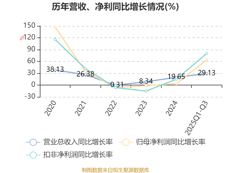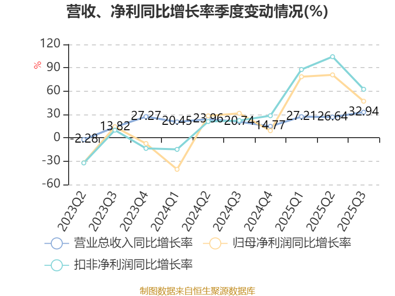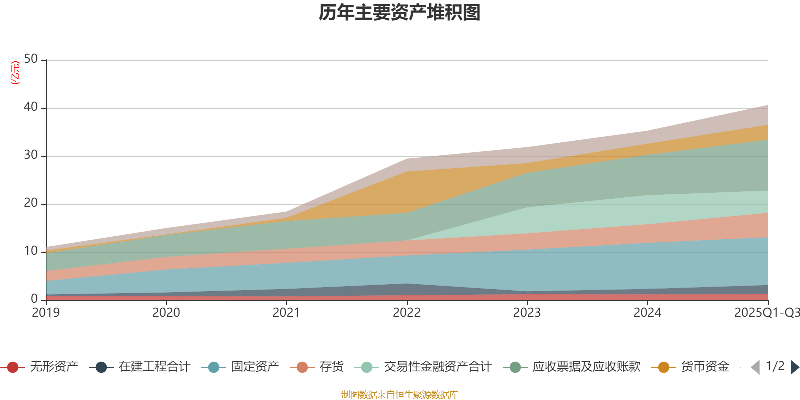 资产重大变化方面,截至2025年三季度末,公司交易性金融资产合计较上年末减少23.26%,占公司总资产比重下降5.74个百分点;固定资产较上年末增加4.04%,占公司总资产比重下降2.64个百分点;应收票据及应收账款较上年末增加25.98%,占公司总资产比重上升2.23个百分点;在建工程合计较上年末增加69.95%,占公司总资产比重上升1.51个百分点。