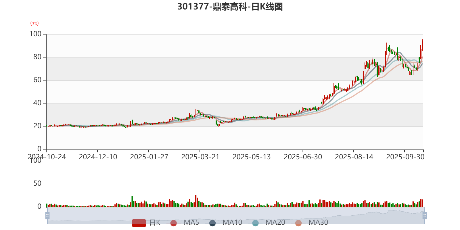 以10月23日收盘价计算,鼎泰高科目前市盈率(TTM)约为114.62倍,市净率(LF)约14.54倍,市销率(TTM)约20.24倍。