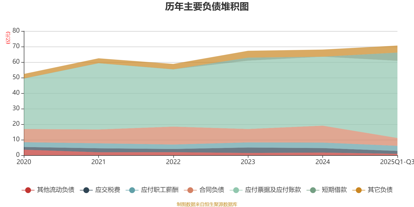 负债重大变化方面,截至2025年三季度末,公司应付票据及应付账款较上年末增加11.87%,占公司总资产比重上升5.84个百分点;合同负债较上年末减少53.53%,占公司总资产比重下降4.2个百分点;短期借款占公司总资产的4.19%,上年末为0;应交税费较上年末减少35.93%,占公司总资产比重下降0.7个百分点。