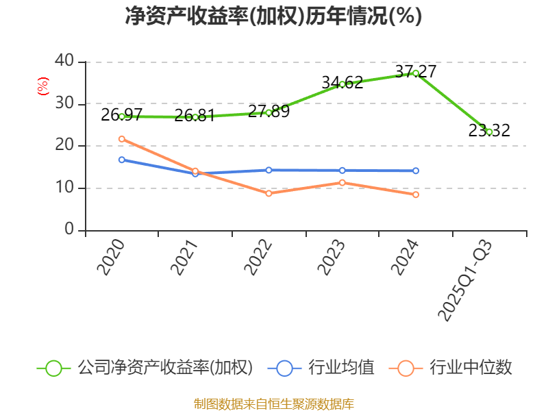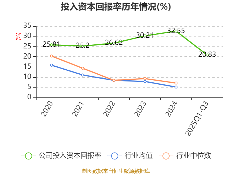 盈利能力方面, 2025年前三季度公司加权平均净资产收益率为23.32%,同比下降1.14个百分点。公司2025年前三季度投入资本回报率为20.83%,较上年同期下降0.75个百分点。