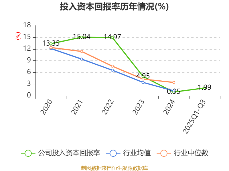 盈利能力方面, 2025年前三季度公司加权平均净资产收益率为0.87%,同比下降0.9个百分点。公司2025年前三季度投入资本回报率为1.99%,较上年同期下降0.91个百分点。