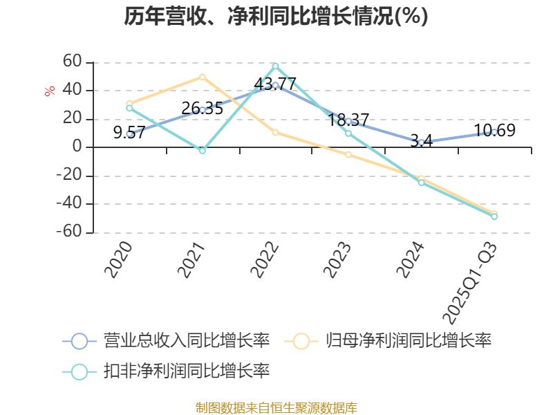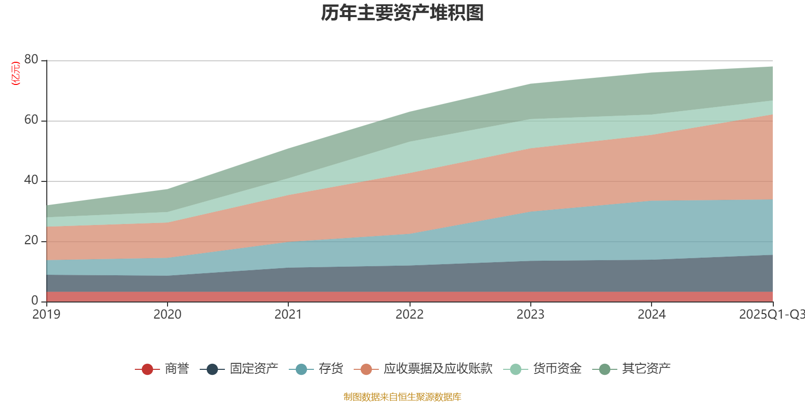 资产重大变化方面,截至2025年三季度末,公司应收票据及应收账款较上年末增加29.24%,占公司总资产比重上升7.45个百分点;货币资金较上年末减少31.49%,占公司总资产比重下降2.96个百分点;在建工程合计较上年末减少52.1%,占公司总资产比重下降2.3个百分点;存货较上年末减少6.33%,占公司总资产比重下降2.25个百分点。