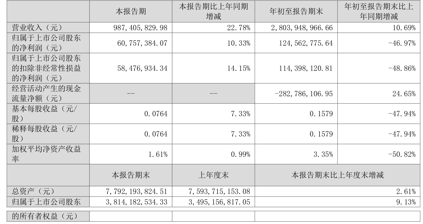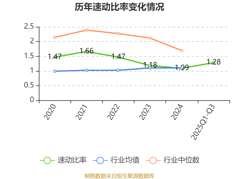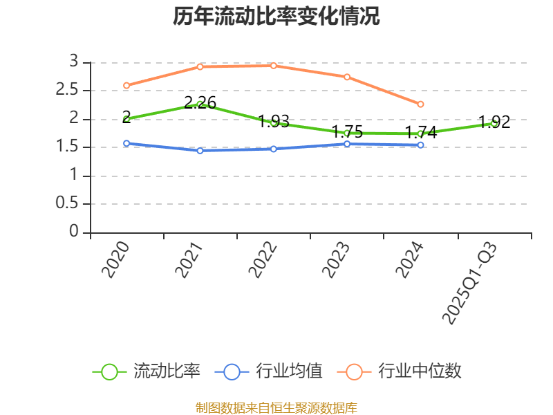 2025年前三季度,公司流动比率为1.92,速动比率为1.28。
