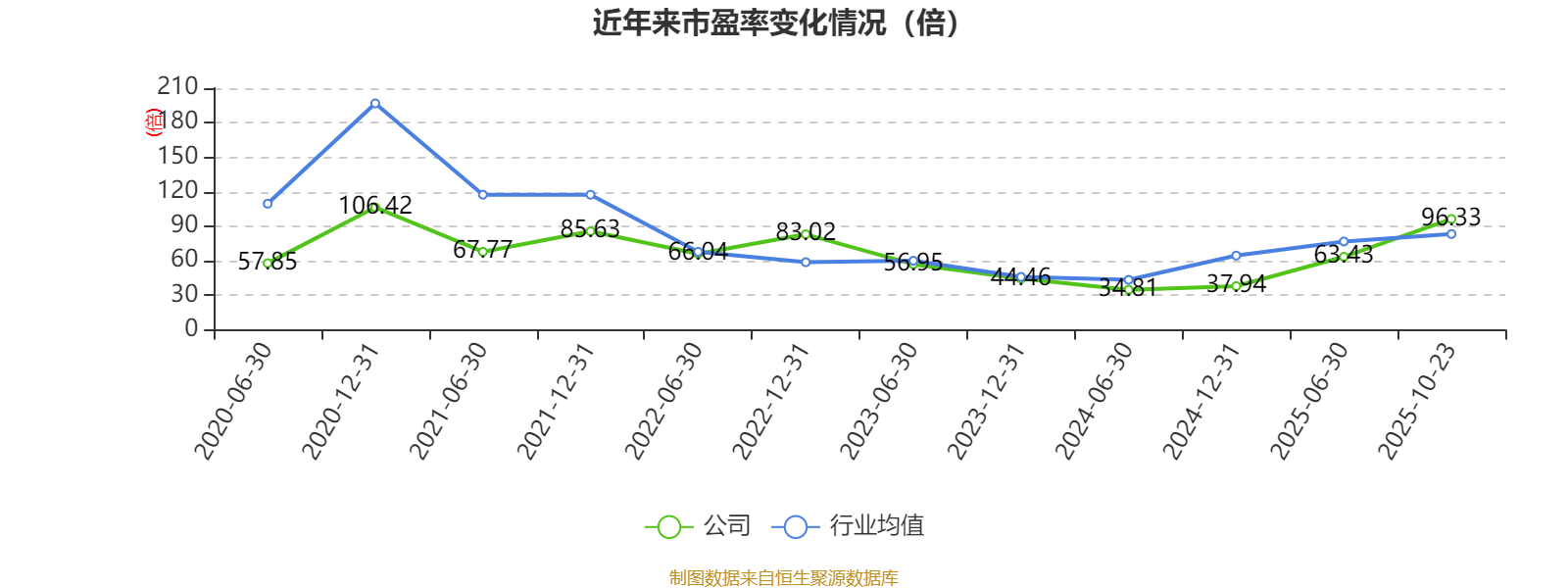 以10月23日收盘价计算,钢研高纳目前市盈率(TTM)约为96.33倍,市净率(LF)约3.49倍,市销率(TTM)约3.51倍。