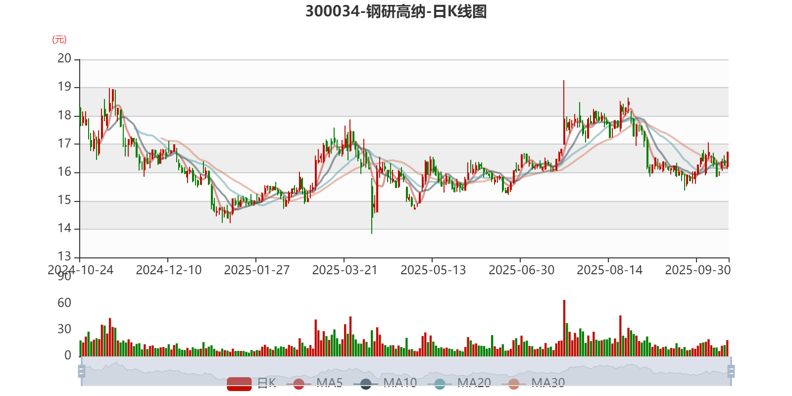 中证智能财讯钢研高纳(300034)10月24日披露2025年第三季度报告。前三季度公司实现营业总收入28.04亿元,同比增长10.69%;归母净利润1.25亿元,同比下降46.97%;扣非净利润1.14亿元,同比下降48.86%;经营活动产生的现金流量净额为-2.83亿元,上年同期为-3.75亿元;报告期内,钢研高纳基本每股收益为0.1579元,加权平均净资产收益率为3.35%。