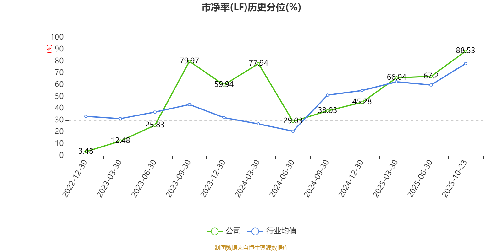 市盈率、市净率为负时,不显示当期分位数,会导致折线图中断。