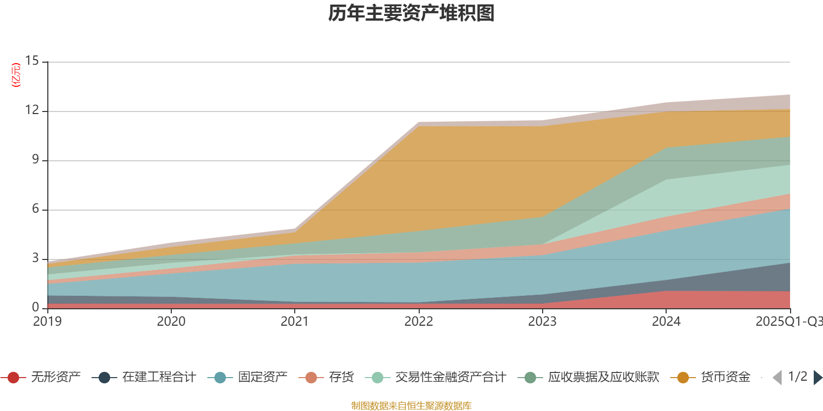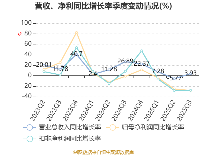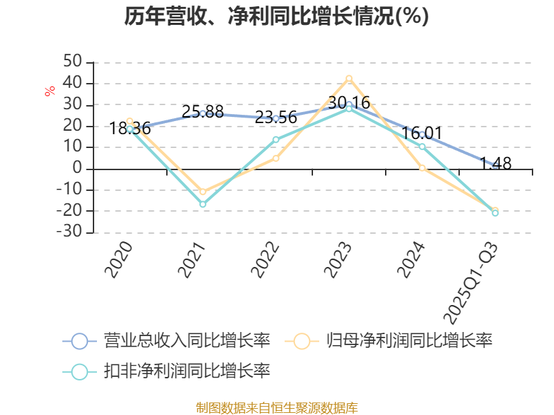 资产重大变化方面,截至2025年三季度末,公司在建工程合计较上年末增加160.15%,占公司总资产比重上升8.01个百分点;货币资金较上年末减少23.23%,占公司总资产比重下降4.56个百分点;交易性金融资产合计较上年末减少22.26%,占公司总资产比重下降4.52个百分点;应收票据及应收账款较上年末减少11.56%,占公司总资产比重下降2.29个百分点。