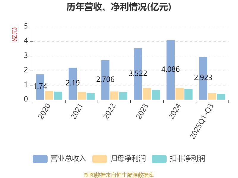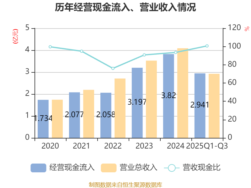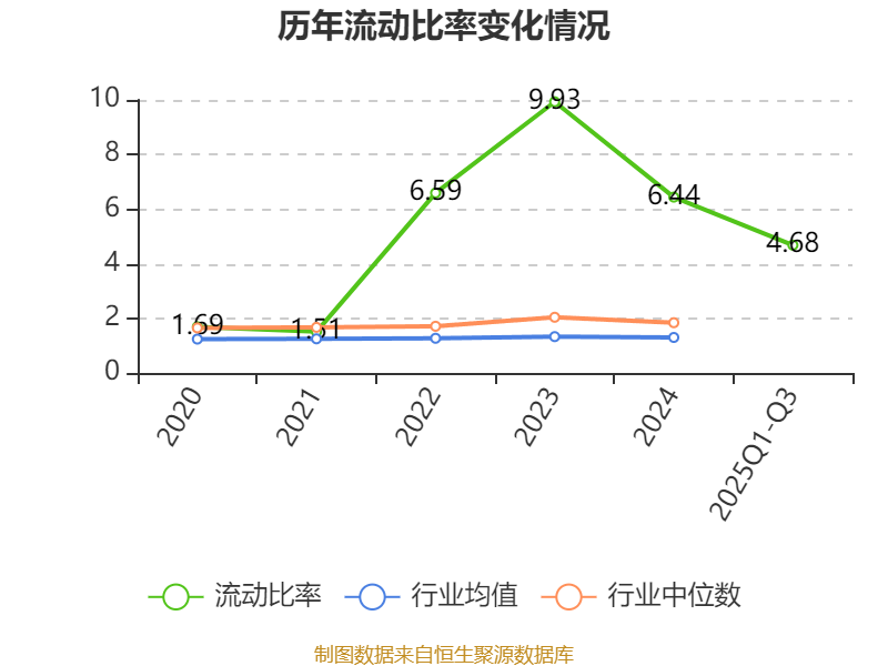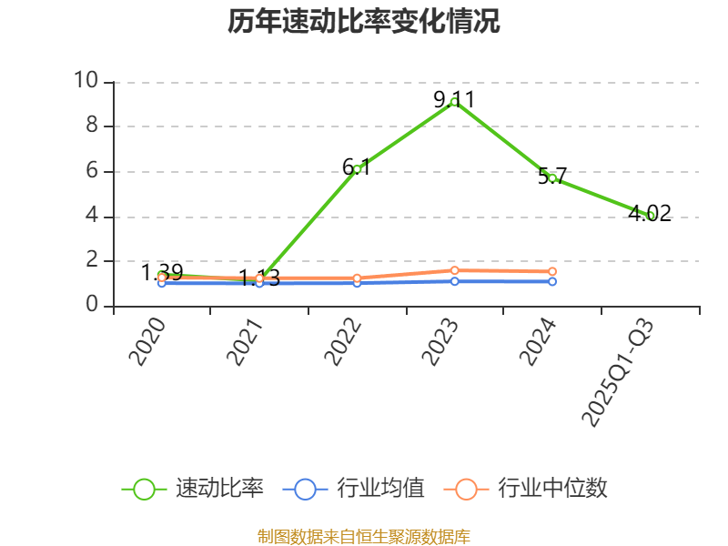 2025年前三季度,公司流动比率为4.68,速动比率为4.02。