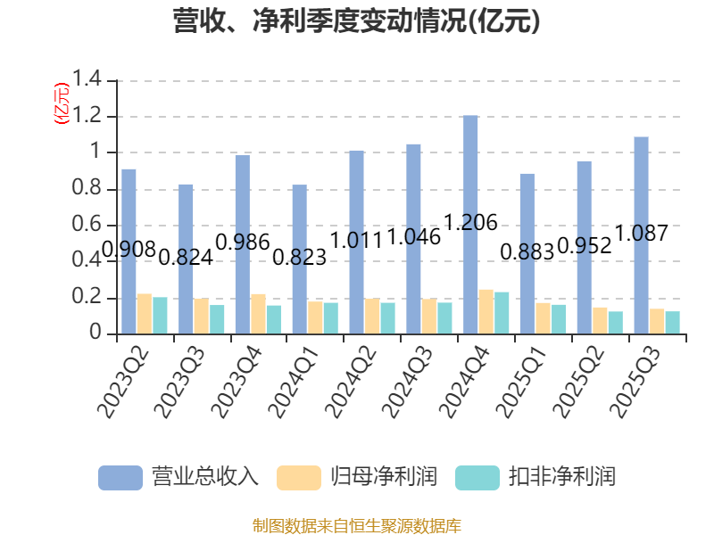 中证智能财讯星源卓镁(301398)10月24日披露2025年第三季度报告。前三季度公司实现营业总收入2.92亿元,同比增长1.48%;归母净利润4507.43万元,同比下降19.63%;扣非净利润4046.14万元,同比下降20.92%;经营活动产生的现金流量净额为5478.2万元,同比下降0.61%;报告期内,星源卓镁基本每股收益为0.4024元,加权平均净资产收益率为4.04%。