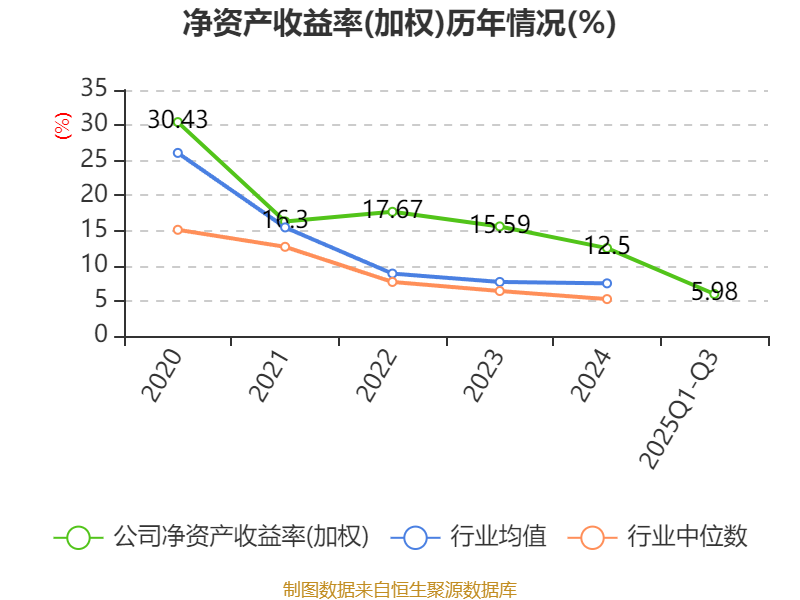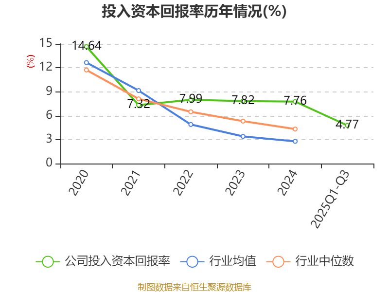 盈利能力方面, 2025年前三季度公司加权平均净资产收益率为5.98%,同比下降4.59个百分点。公司2025年前三季度投入资本回报率为4.77%,较上年同期下降0.72个百分点。