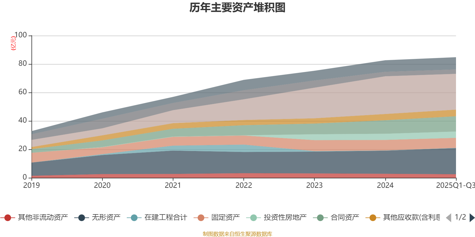 资产重大变化方面,截至2025年三季度末,公司应收票据及应收账款较上年末减少5.09%,占公司总资产比重下降2.41个百分点;无形资产较上年末增加13%,占公司总资产比重上升2个百分点;合同资产较上年末增加12.86%,占公司总资产比重上升1.15个百分点;固定资产较上年末减少4.75%,占公司总资产比重下降0.64个百分点。