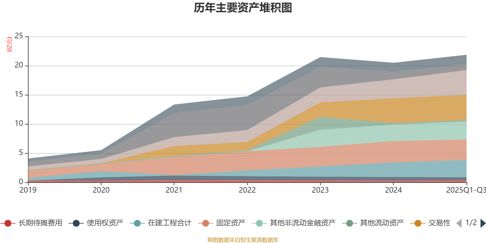 资产重大变化方面,截至2025年三季度末,公司应收票据及应收账款较上年末增加31.2%,占公司总资产比重上升3.63个百分点;固定资产较上年末减少4.11%,占公司总资产比重下降1.8个百分点;货币资金较上年末减少16.94%,占公司总资产比重下降1.4个百分点;在建工程合计较上年末增加18.45%,占公司总资产比重上升1.35个百分点。