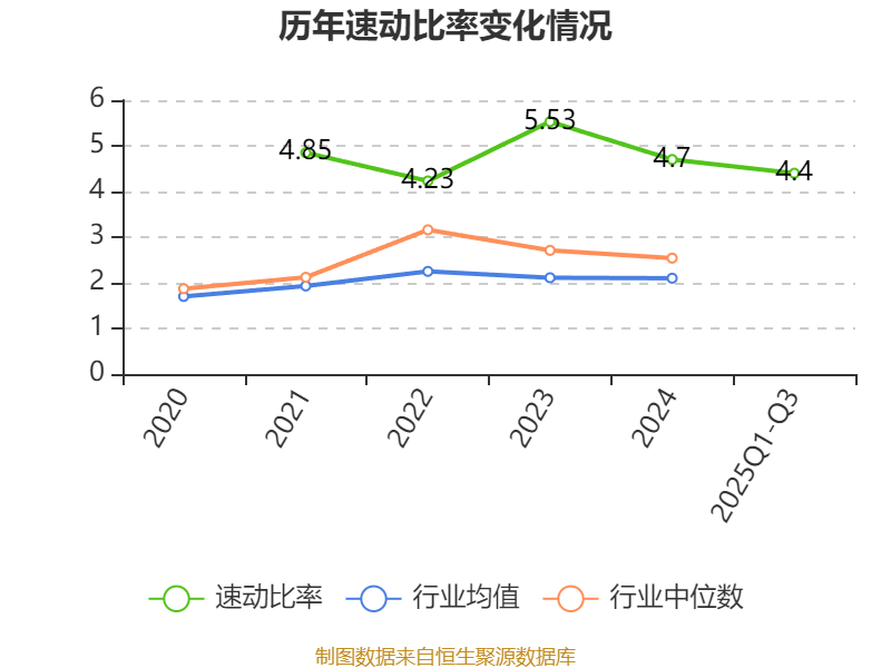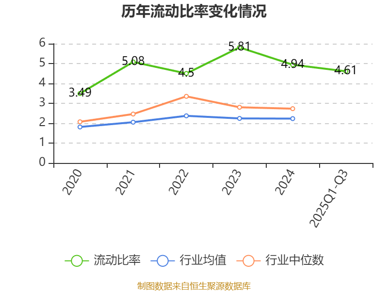 2025年前三季度,公司流动比率为4.61,速动比率为4.4。