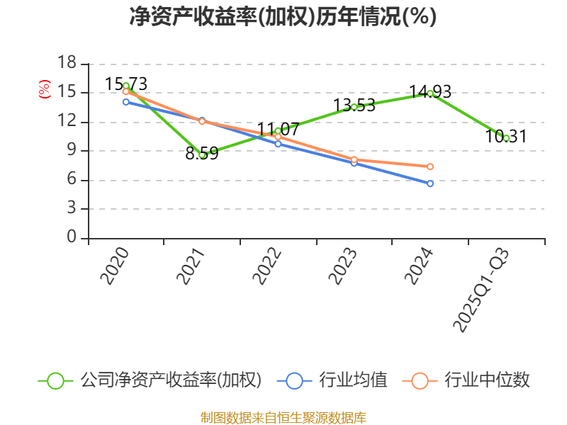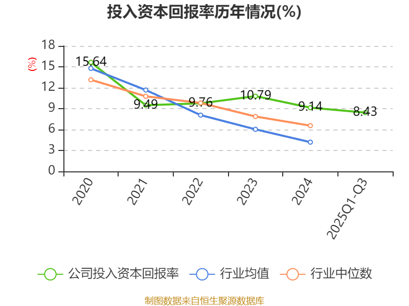 盈利能力方面, 2025年前三季度公司加权平均净资产收益率为10.31%,同比下降1.62个百分点。公司2025年前三季度投入资本回报率为8.43%,较上年同期上升0.45个百分点。