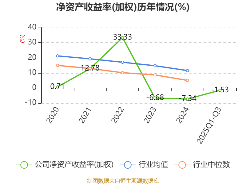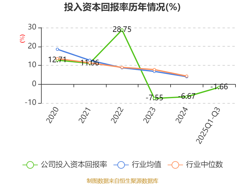 盈利能力方面, 2025年前三季度公司加权平均净资产收益率为-1.53%,同比上升4.09个百分点。公司2025年前三季度投入资本回报率为-1.66%,较上年同期上升3.48个百分点。