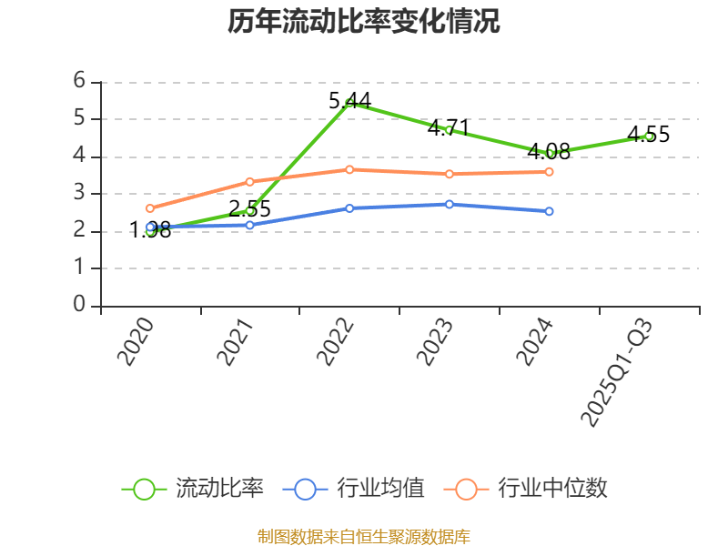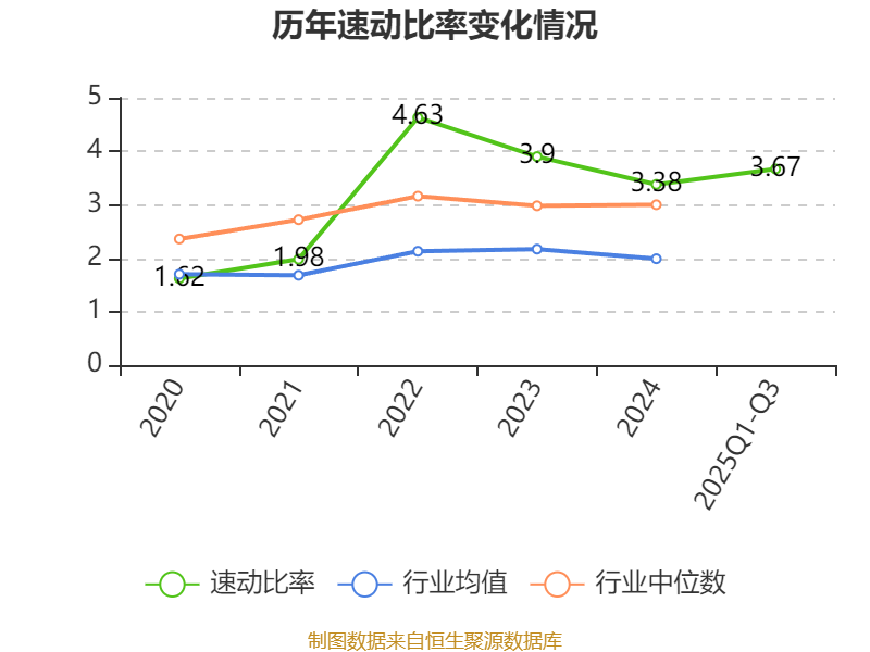 2025年前三季度,公司流动比率为4.55,速动比率为3.67。