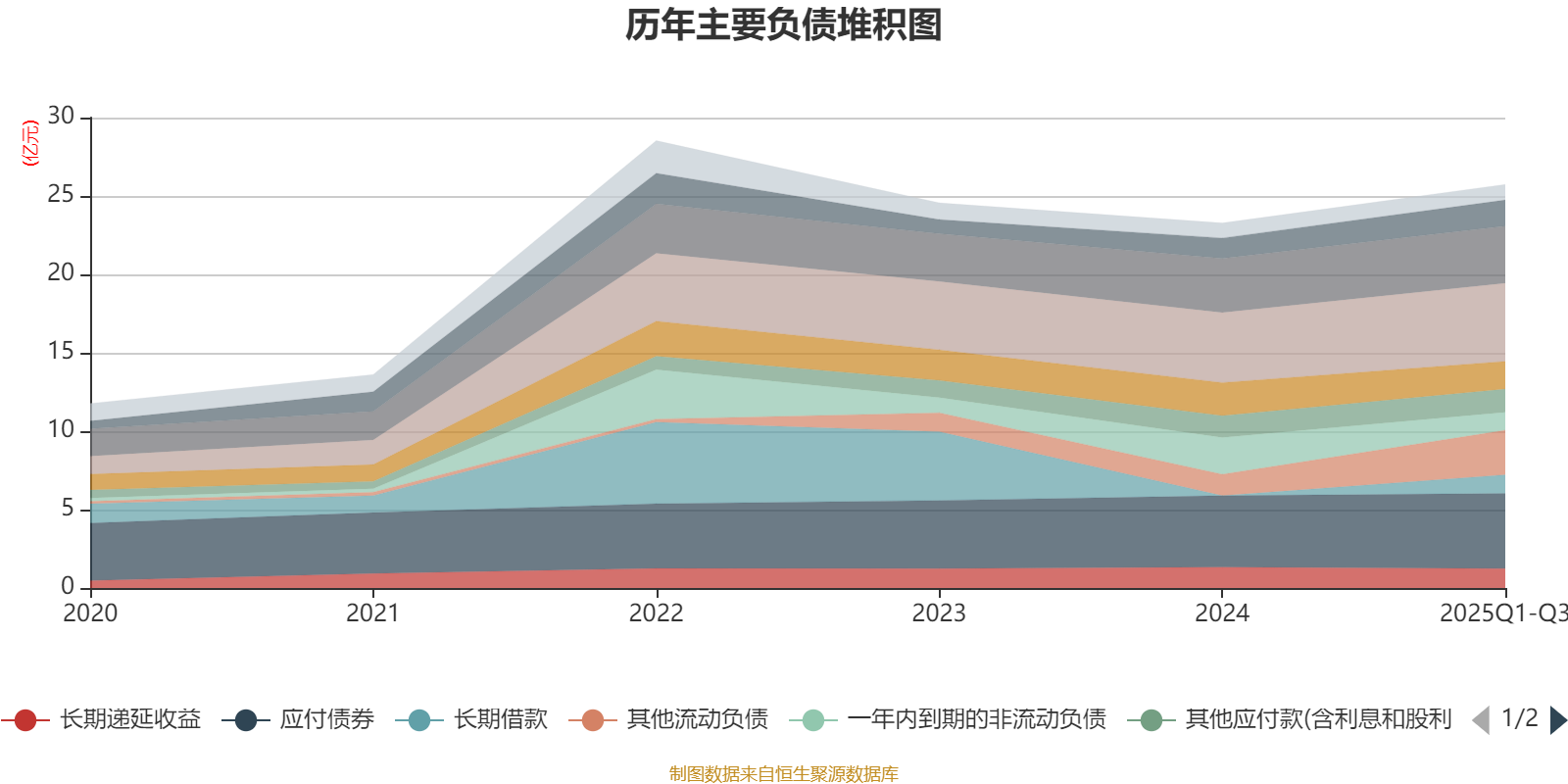负债重大变化方面,截至2025年三季度末,公司其他流动负债较上年末增加108.49%,占公司总资产比重上升2.32个百分点;一年内到期的非流动负债较上年末减少51.43%,占公司总资产比重下降2.02个百分点;长期借款较上年末增加99000%,占公司总资产比重上升1.9个百分点;合同负债较上年末增加11.47%,占公司总资产比重上升0.64个百分点。