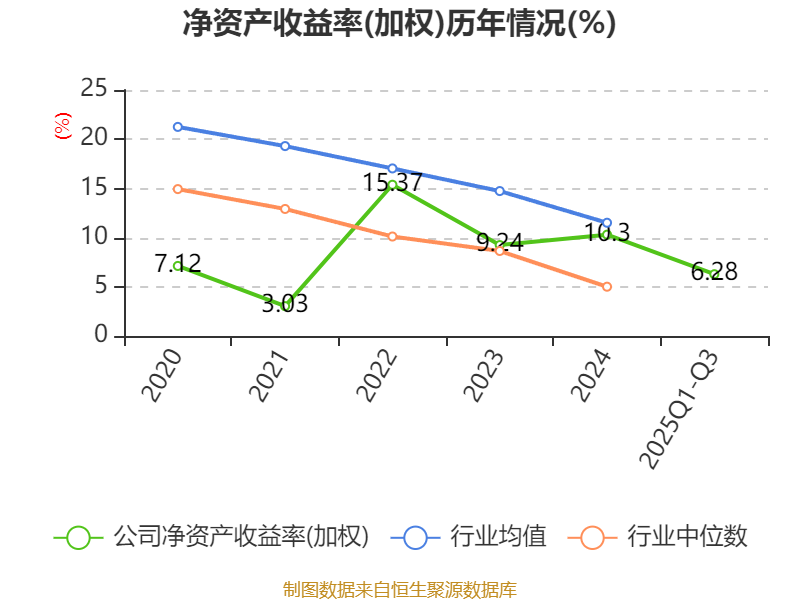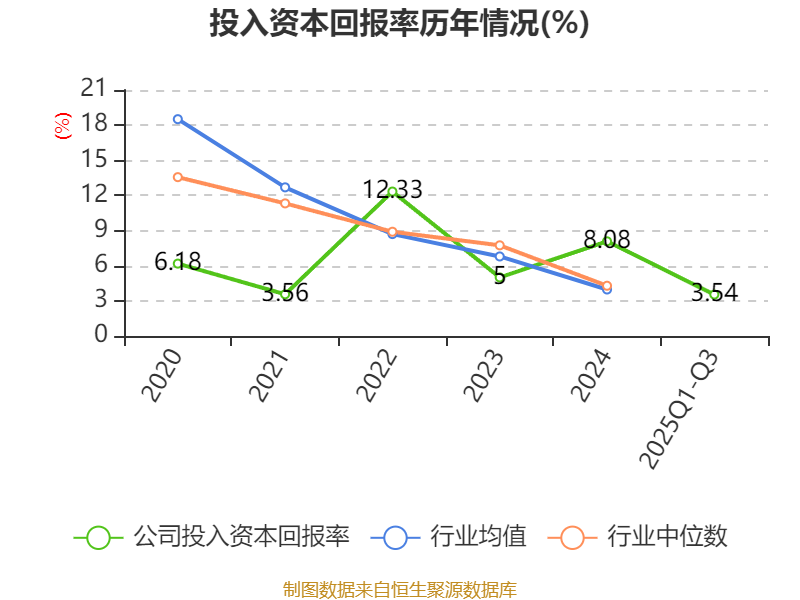盈利能力方面, 2025年前三季度公司加权平均净资产收益率为6.28%,同比下降1.67个百分点。公司2025年前三季度投入资本回报率为3.54%,较上年同期下降2.81个百分点。