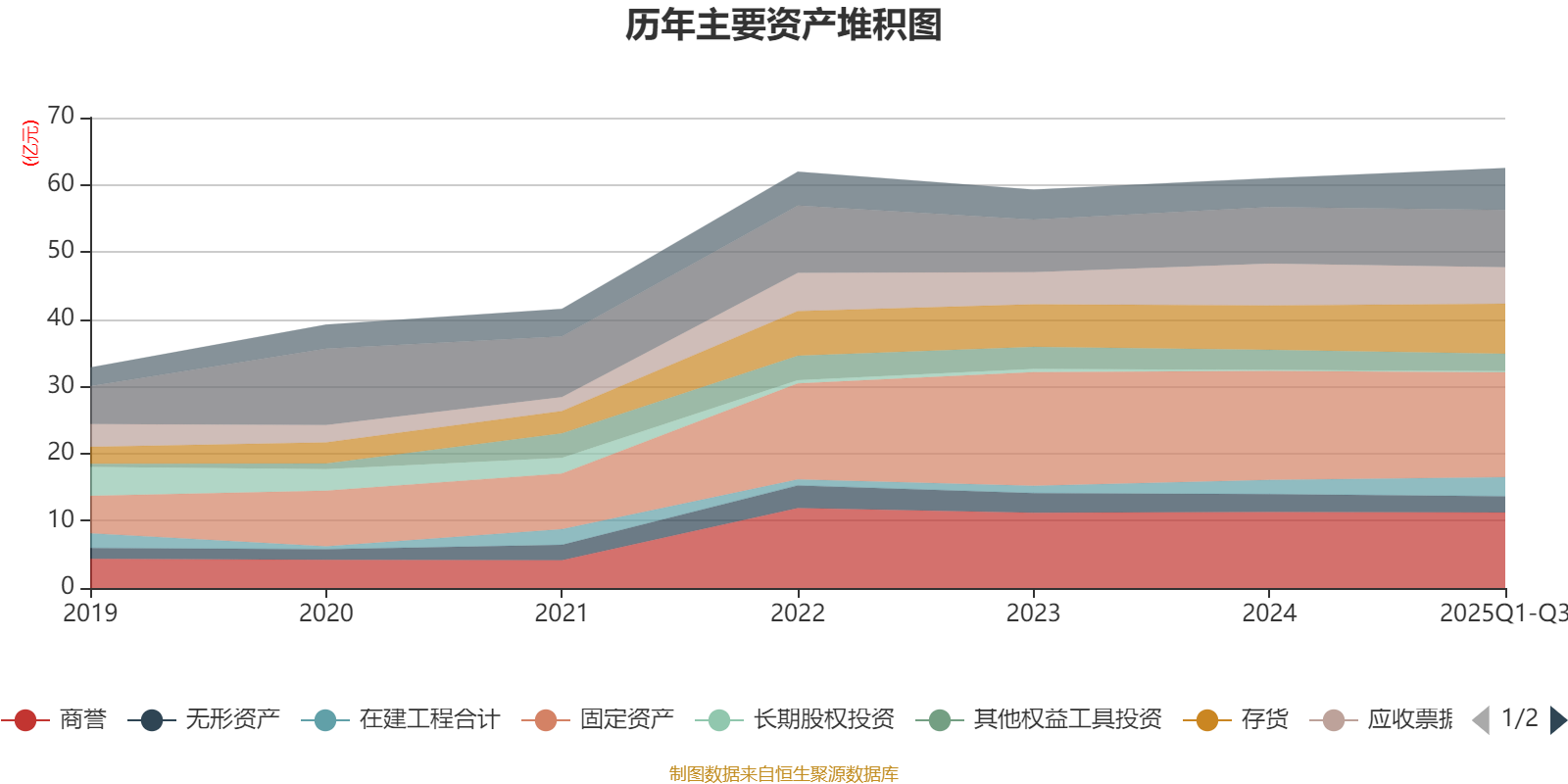 资产重大变化方面,截至2025年三季度末,公司交易性金融资产合计较上年末增加100.51%,占公司总资产比重上升1.73个百分点;固定资产较上年末减少3.84%,占公司总资产比重下降1.64个百分点;应收票据及应收账款较上年末减少12.19%,占公司总资产比重下降1.46个百分点;在建工程合计较上年末增加35.26%,占公司总资产比重上升1.11个百分点。