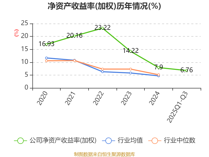盈利能力方面, 2025年前三季度公司加权平均净资产收益率为6.76%,同比上升0.9个百分点。公司2025年前三季度投入资本回报率为6.68%,较上年同期上升0.94个百分点。