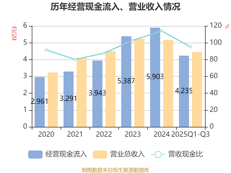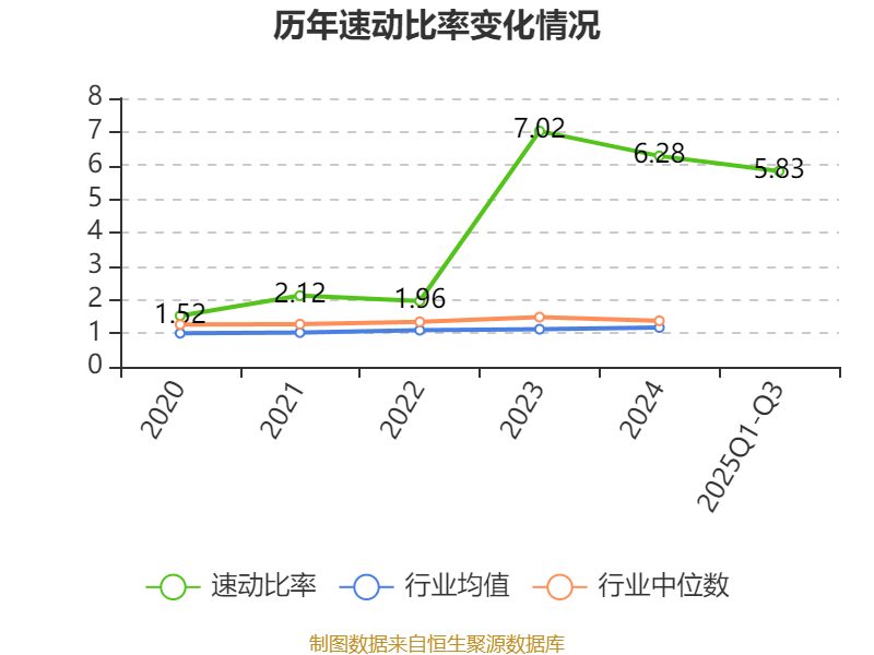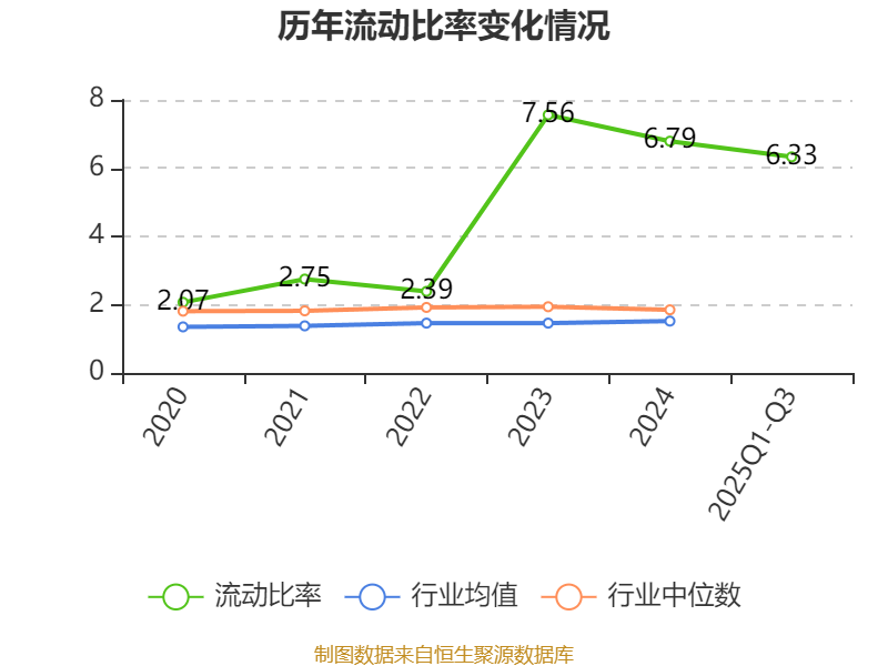 2025年前三季度,公司流动比率为6.33,速动比率为5.83。