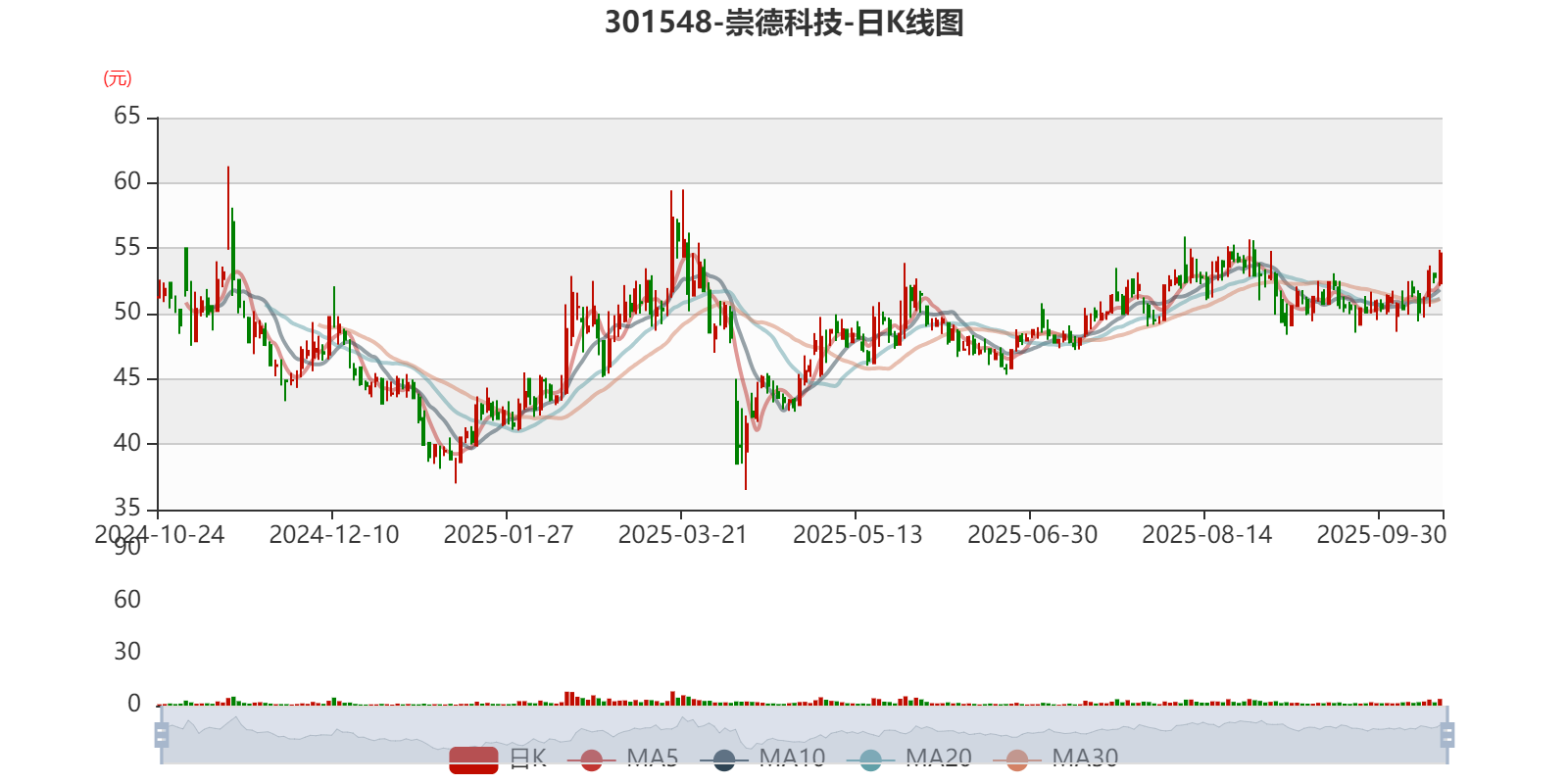 以10月23日收盘价计算,崇德科技目前市盈率(TTM)约为35.93倍,市净率(LF)约3.15倍,市销率(TTM)约8.02倍。