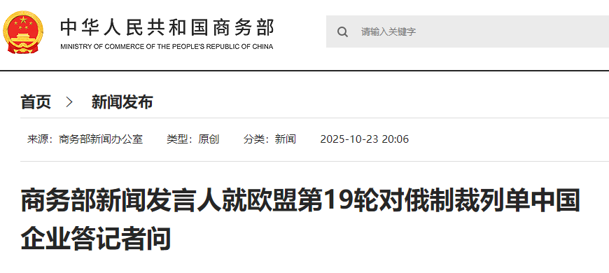 商务部新闻发言人就欧盟第19轮对俄制裁列单中国企业答记者问。
